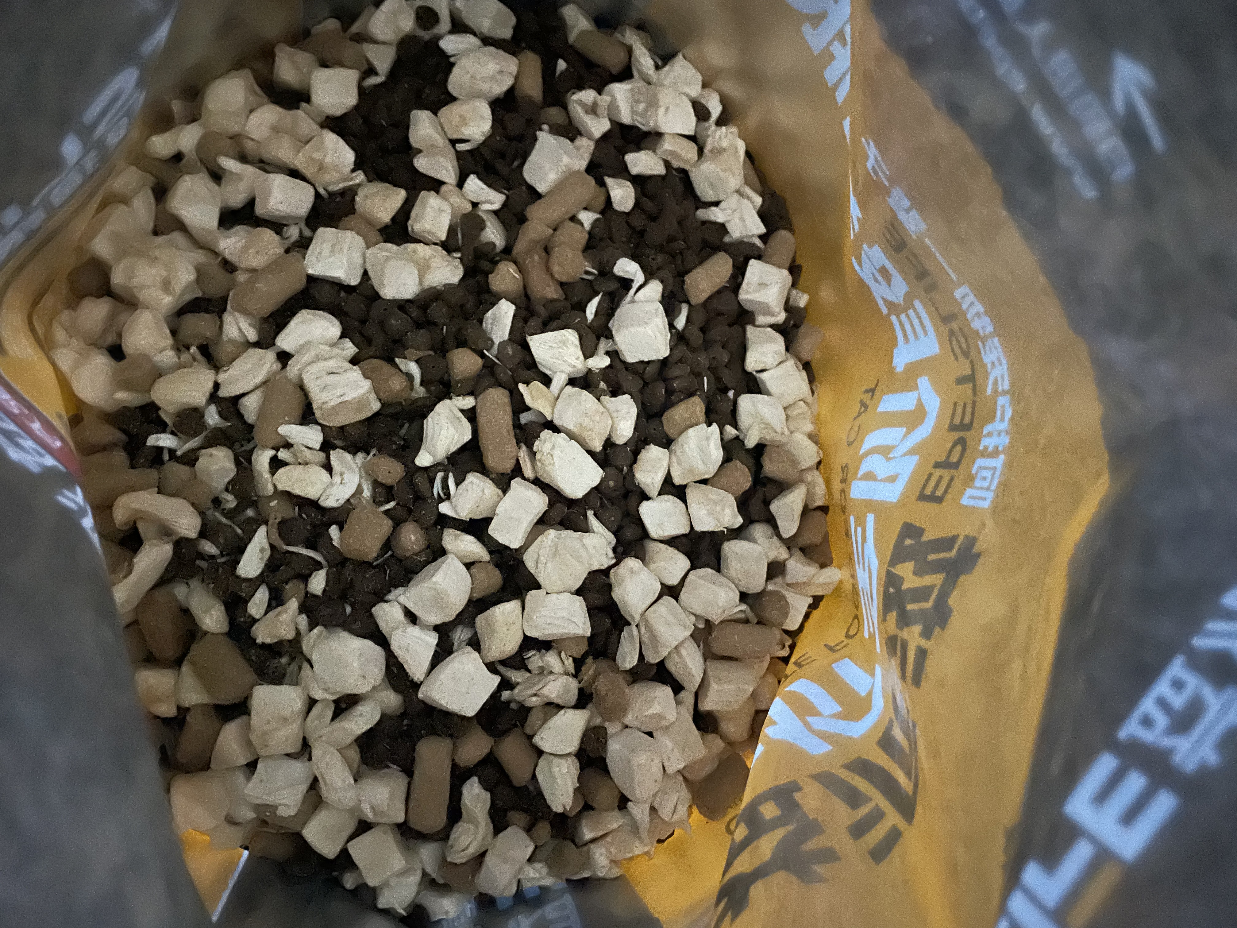 猫粮收到了 自己先尝了一口 不油不咸 刚打开猫咪就围上来了 冻干是真多 这下有口福啦