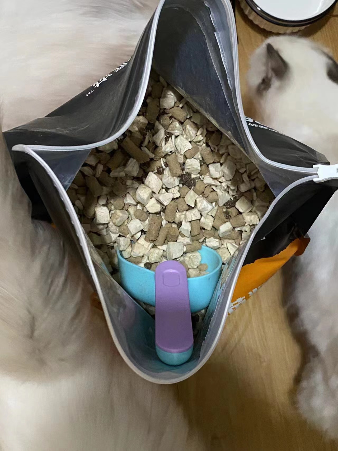 收到货一打开好香,满满的冻干,这个品质真的没话说,猫咪很喜欢